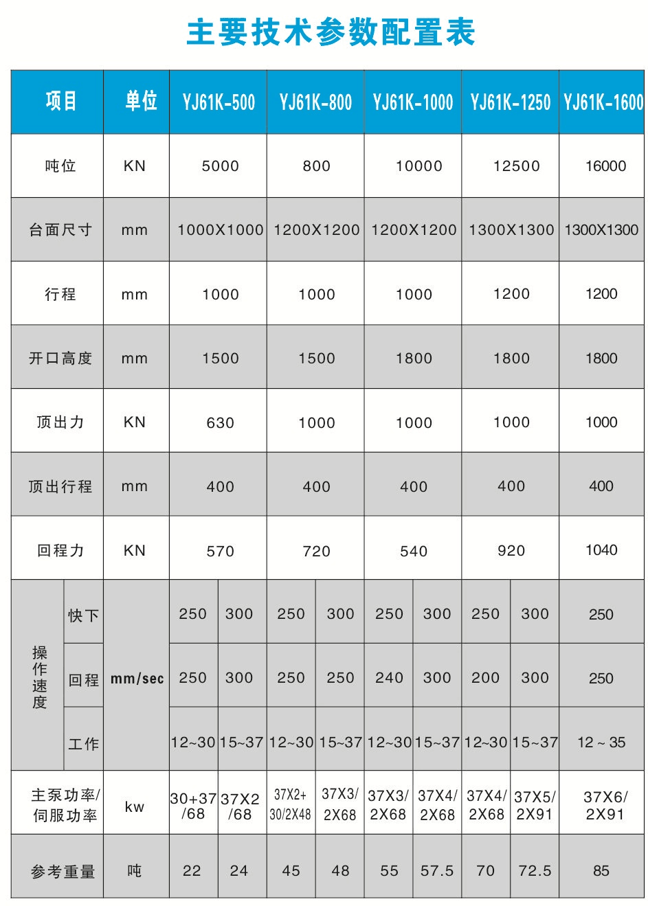 • 一、性能特點(diǎn):YJ61K系列為框架結(jié)構(gòu),高剛性和高強(qiáng)度,滑塊四角八面導(dǎo)軌,調(diào)整精度高,穩(wěn)定性好,抗偏載能力強(qiáng);計(jì)算機(jī)優(yōu)化設(shè)計(jì);液壓系統(tǒng)采用二通插裝閥集成控制,防滲漏法蘭管路系統(tǒng),減少滲漏點(diǎn);具有調(diào)整、手動(dòng)、半自動(dòng)三種工藝規(guī)范和定程、定壓兩種控制方式;頂出缸可實(shí)現(xiàn)頂起、不頂起二種工藝動(dòng)作;
